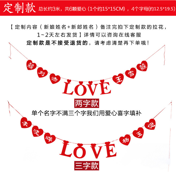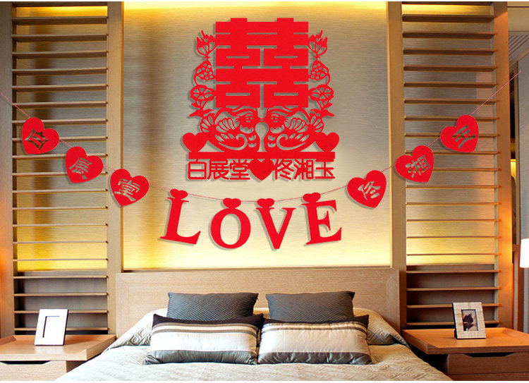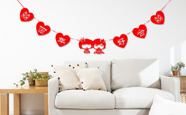 Wedding Celebration Laflower Wedding House Arrangement Unwoven Cloth LOVE Love Delight Character Wedding Decoration Wedding Accessories Individuality Hanging Accessories