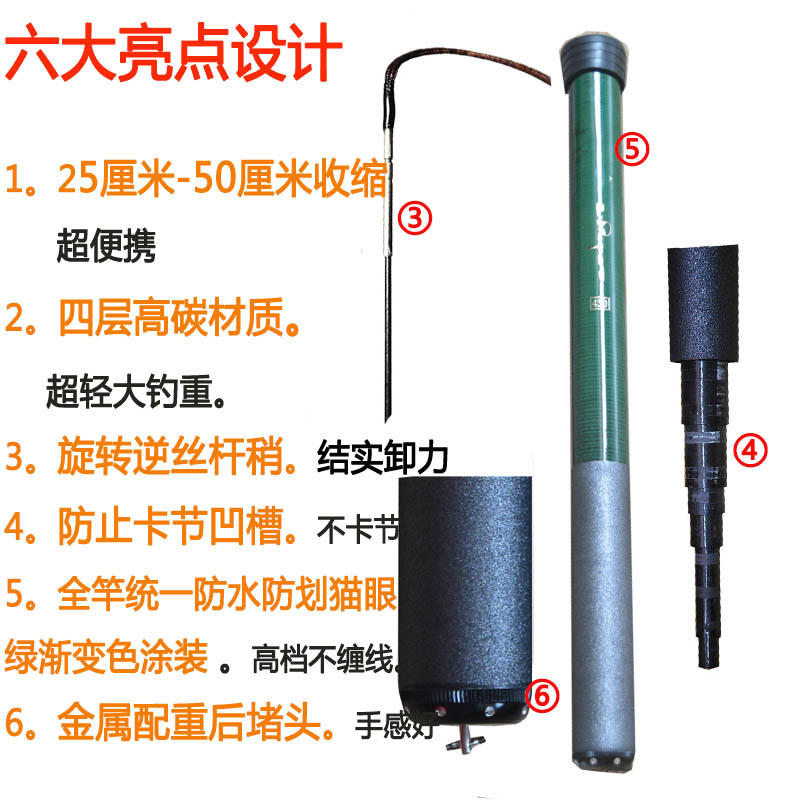 Falling Moon Man Pocket Ultra Short Rod Carbon Stream Rod Super Hard 19 Tones 28 Tone Short Section Hand Rod 25cm Short Fishing Rod