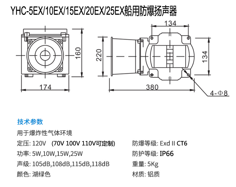YHCB-3 YHCB-5 YHCB-10 YHCB-15 YHCB-25 Marine constant pressure explosion-proof speaker
