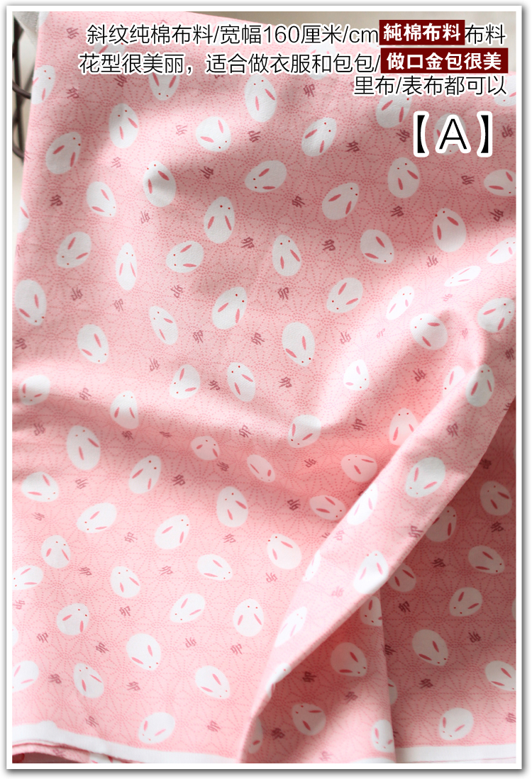 Pink Rabbit Printed Cotton Kimono Japanese Rabbit Cherry Blossom Fabric DIY Patchwork Hanfu Fabric 1 Meter