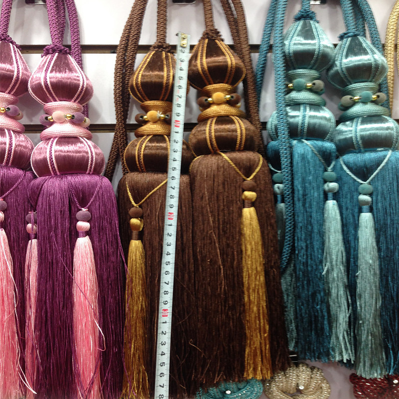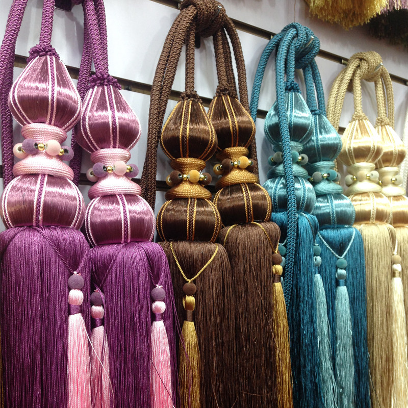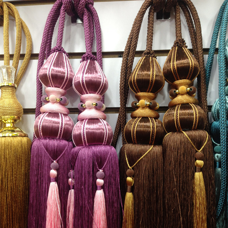 New pure hand-woven hanging ball curtain tie ball adhesive hook curtain with tassel curtain pendant Double Ball structure