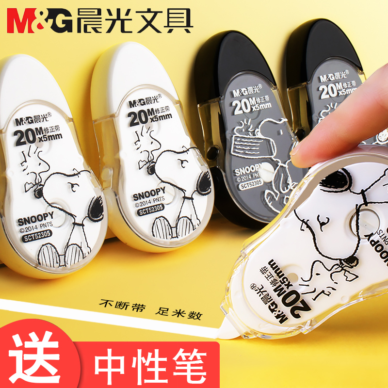 Morning Light Stationery Elementary Student Fixed with 20m Large Capacity Correction Belt 52305 Creative Cartoon Cute Black and White Snoopy Coating Belt Strap Long-Term Change Band Durable Not Easy Cardwich Little Clothing and Clean Limit