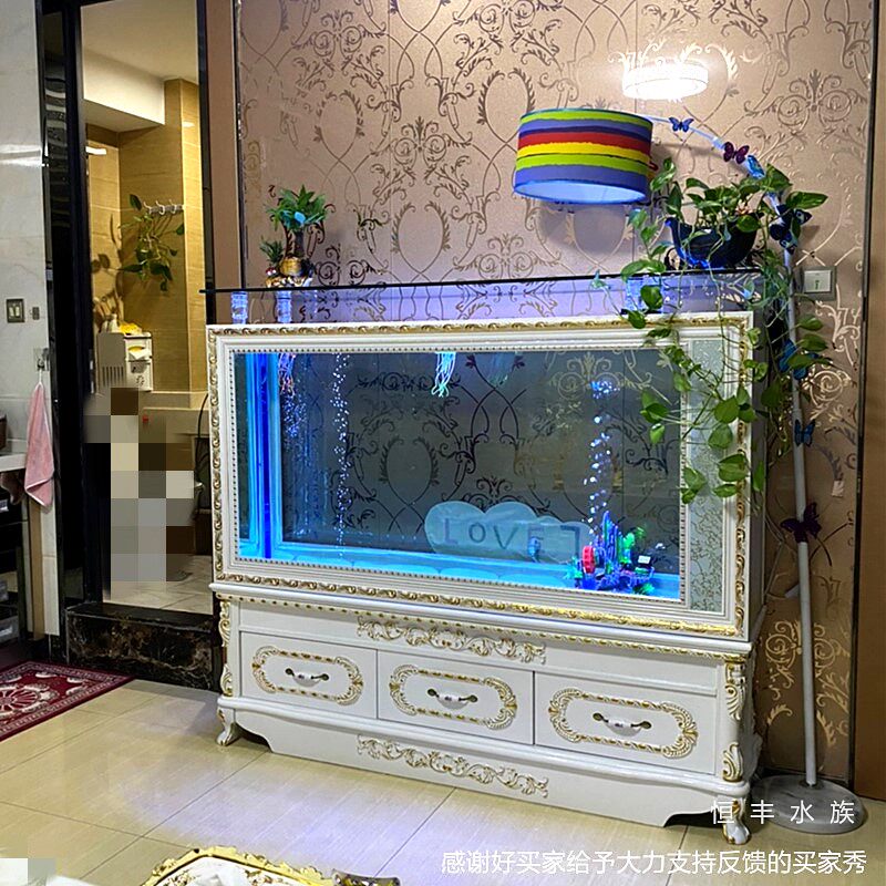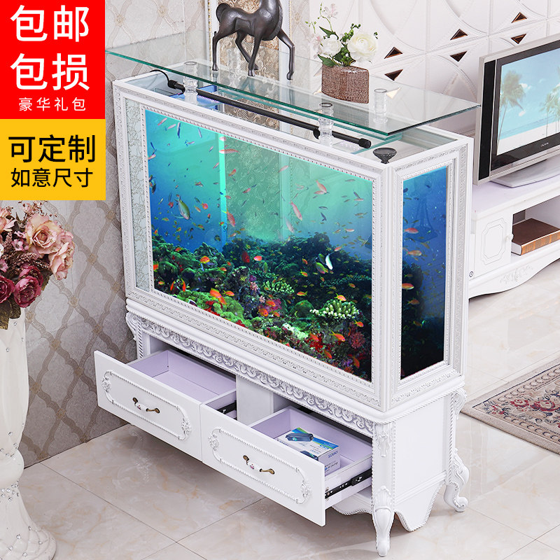 European-style large and medium-sized glass screen ecological goldfish tank aquarium home living room shoe cabinet can be fixed ultra-White