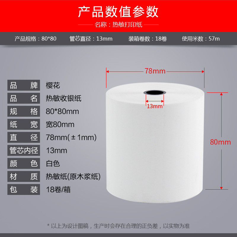Sakura 80*80 thermal copy paper cash register paper roll 80x80 fast food restaurant kitchen A la carte number receipt receipt receipt paper Rear kitchen printer paper 8080 kitchen printer record paper 18 rolls