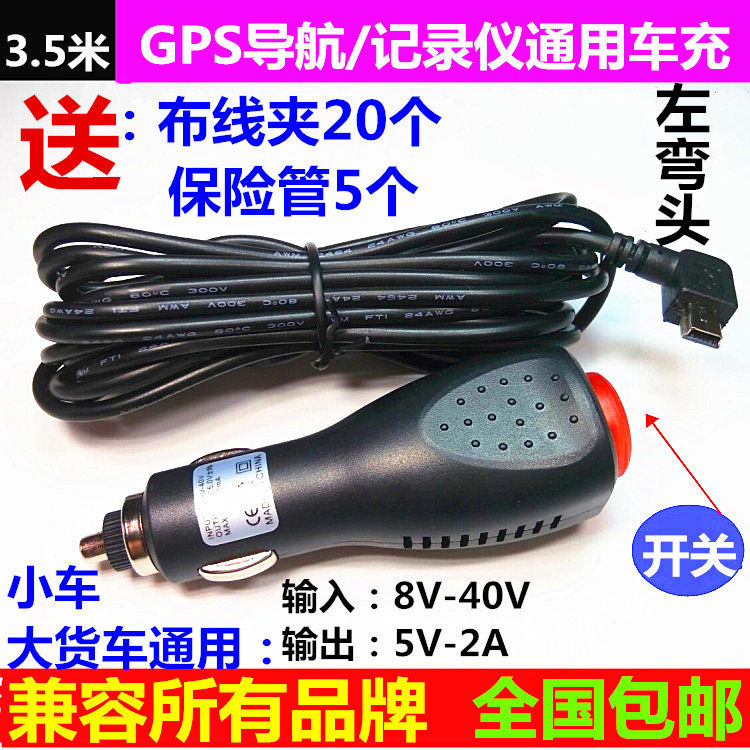 Car GPS navigation car charging 24 12v to 5V2A dashcam power cord 3.5 meters with switch T head