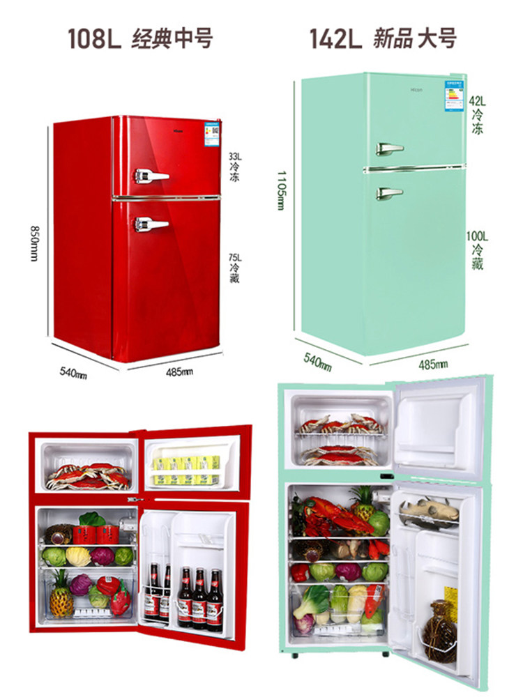 HICON Wellcome BCD-108 refrigerator Household small double door fashion refrigerator Mini retro small refrigerator
