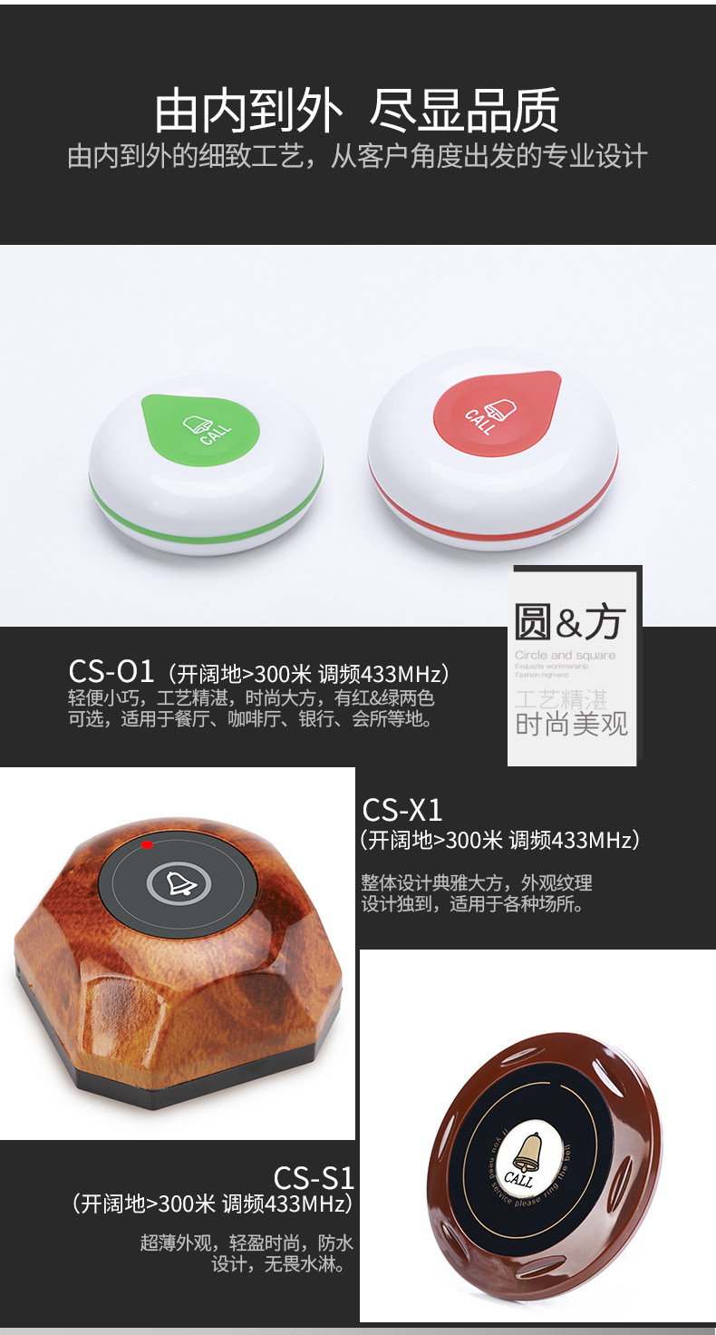 Wireless reverse alarm chess room pager office elderly call foot bath club bath emergency alarm