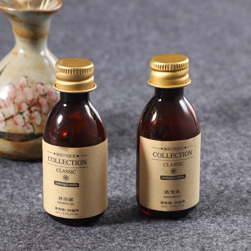 Custom bed and breakfast high-end hotel rooms disposable toiletries 30ml bottle shampoo shower gel