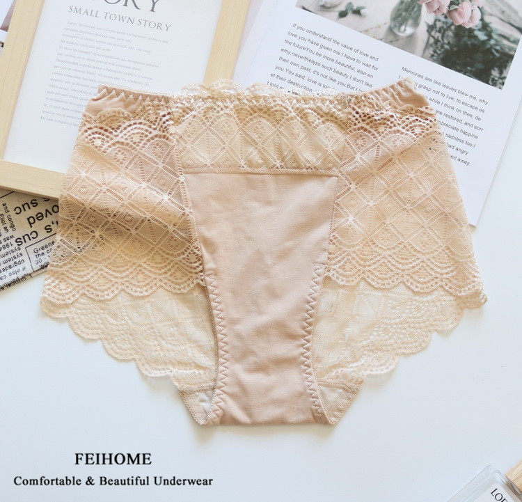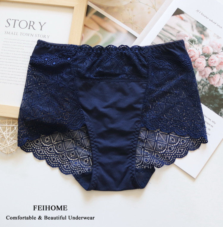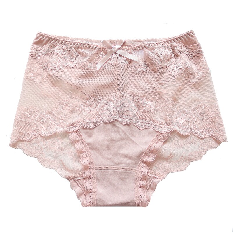 Ladies Mid-High Waist Thin Breathable Hip Bag Ladies Shorts Soft Modal Cotton and Lace Panties Plus Size