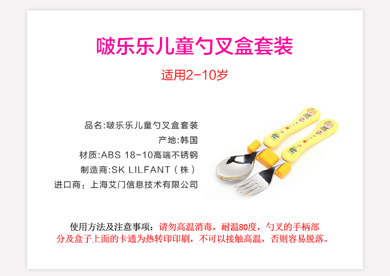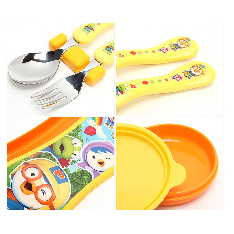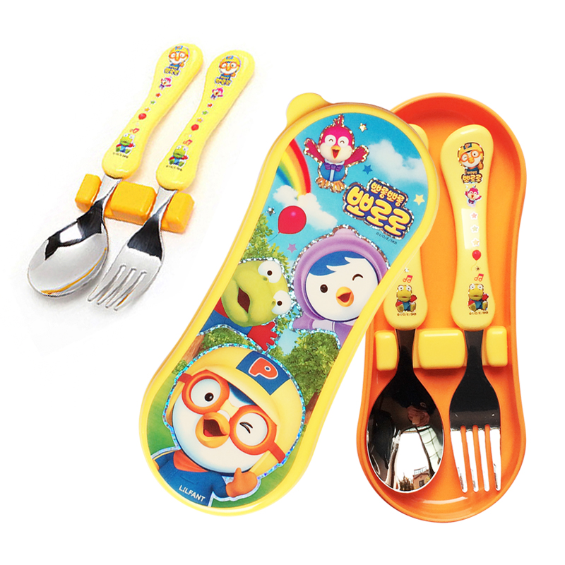 South Korea imported Baolulu pororo children's new cartoon spoon and fork box tableware stainless steel set