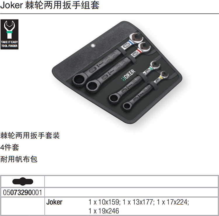 Germany Wera Vera JOKER 6000 4-piece set 11-piece set metric ratchet dual-use opening wrench 8-19mm