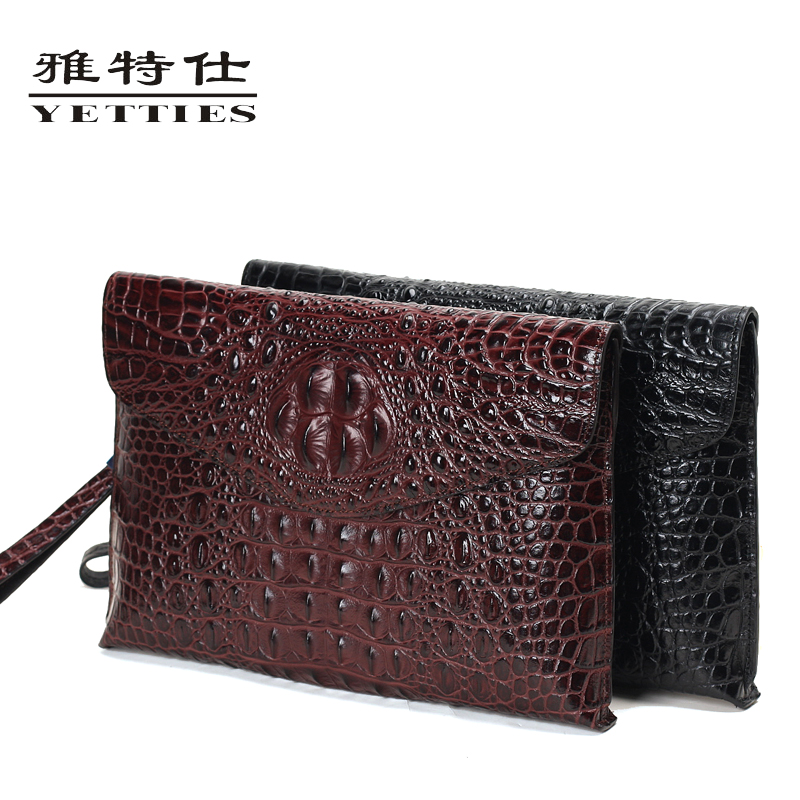 Avocado Leather Handbag leather handbag Crocodile Ripple envelope Envelope Boomer Business Hand Grab Bag Armpits Casual Hand Grip Bag Clip