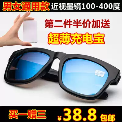 Sunglasses with power trendy men and women retro round glasses frame finished myopia sunglasses 100-400 degrees