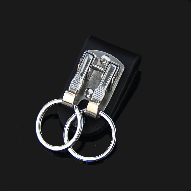 Boyou friendly wearing leather strap key buckle cow leather stainless steel waist hanging key chain men's double ring key ring buckle pendant-Taobao