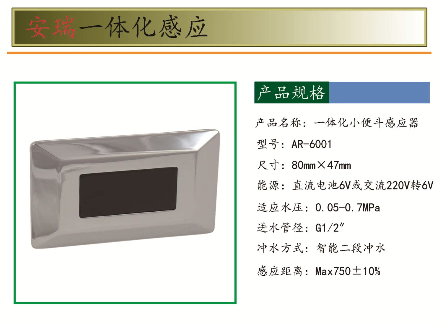 Integrated urinal sensor accessories 6001 panels