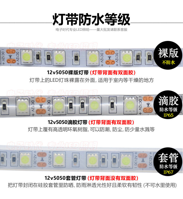 12V 12V 5050 bare board (ice blue) with back glue 12V 5050 drop glue (ice blue) with back glue 12V 5050 sleeves (ice blue) without back glue