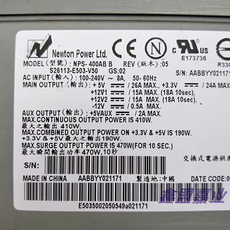 Taida NPS-400AB B Siemens Fujitsu Industrial Computer Server Power Supply S26113-E503-V50