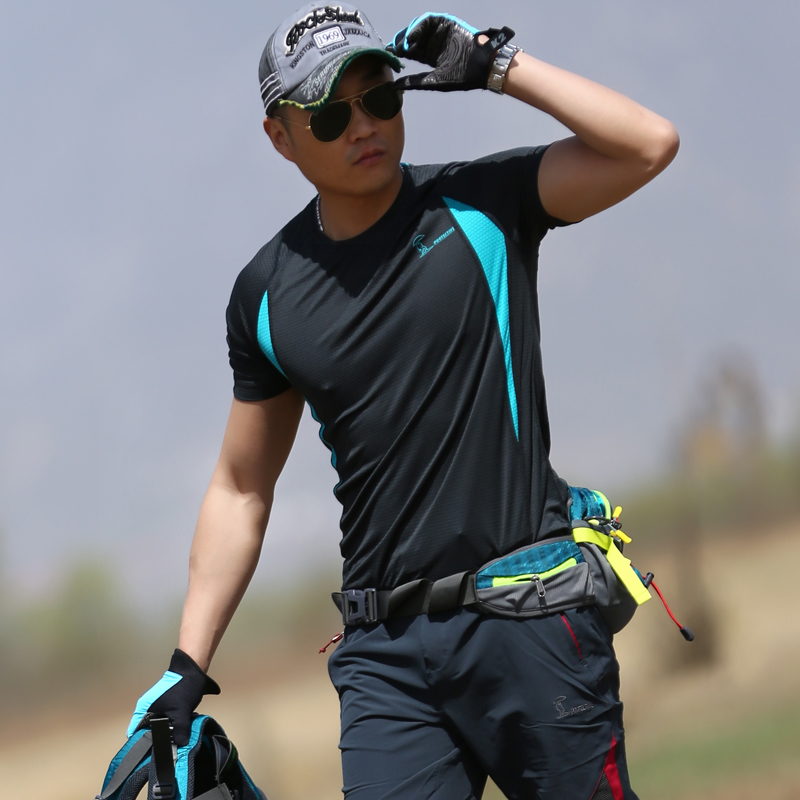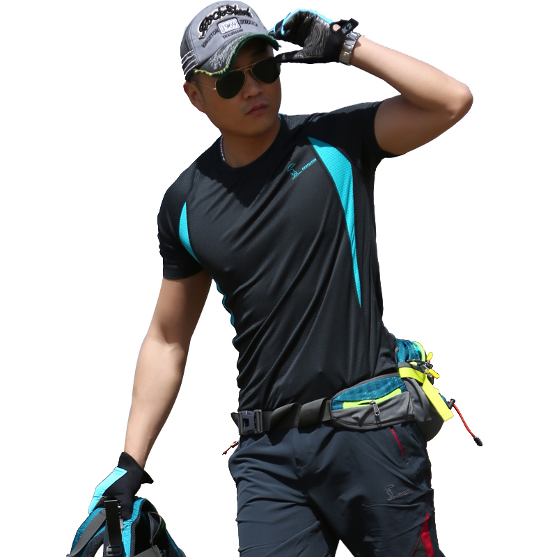 Naughty outdoor men's quick dry round collar short sleeves T-shirt breathable perspiration summer clear and super-equipped casual quick-drying clothes