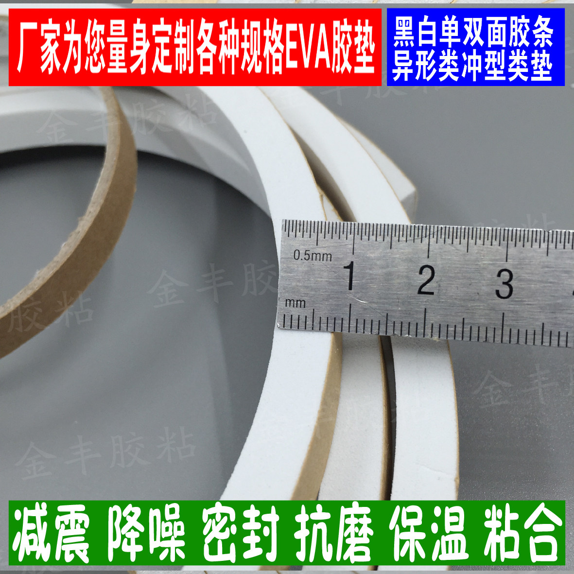 White-sided EVA foam sponge adhesive tape 8mm thick 2CM wide anti-sharper foot pad anti-shock padding soundproof adhesive strip-Taobao