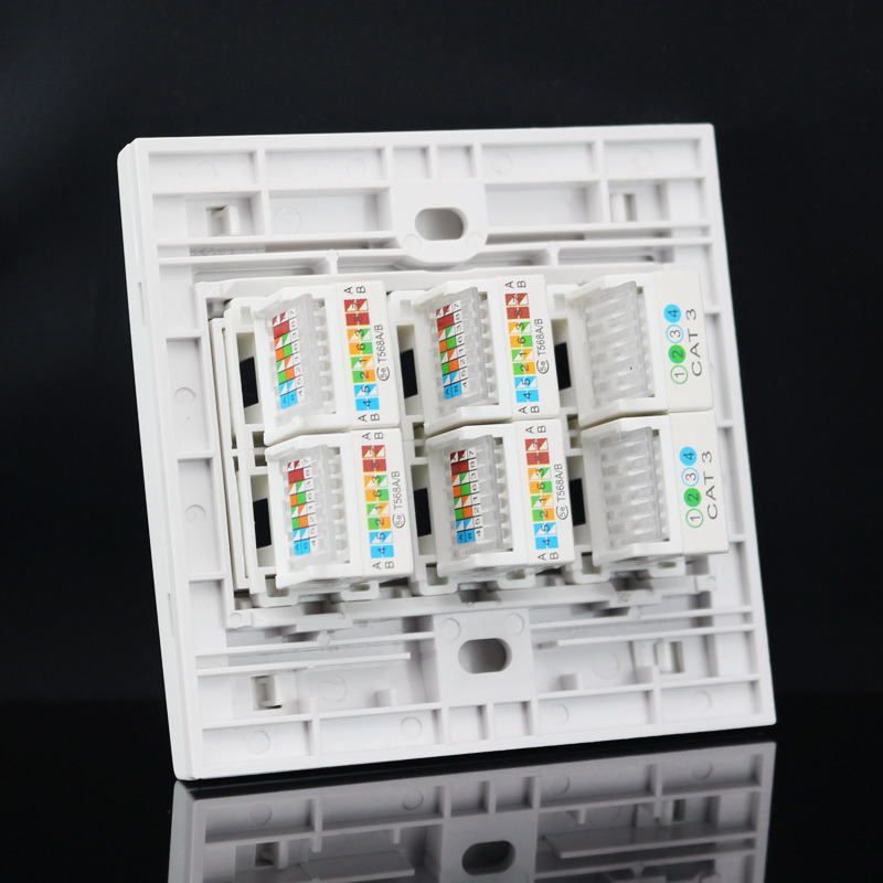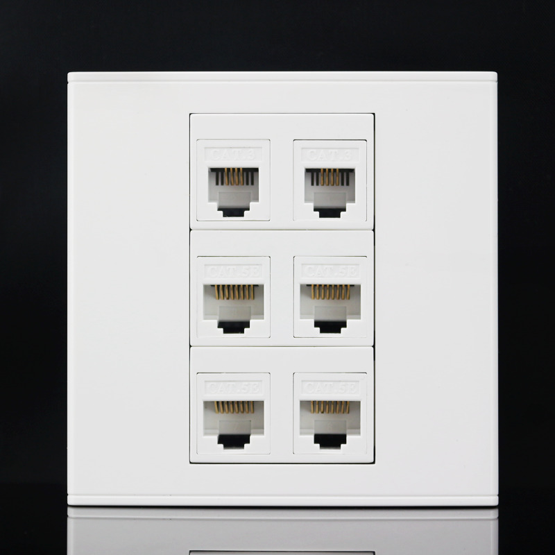 Type 86 4 Internet 2 telephone sockets Panel 4-mouth Computer network route plus double phone voice switch socket
