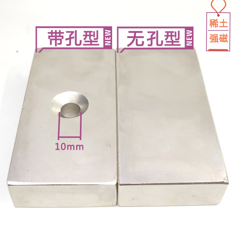 Strong magnetic non-porous type 100*50*20mm strong tape hole type 100*50*20mm strong tape hole type +304 lifting ring 100*50*20mm This store model has better magneticity than the same size on the market