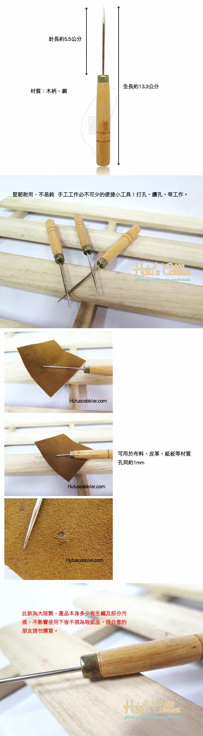Taiwan shoemaker shoe material N75 wooden handle awl punch hole drill handmade tool DIY leather