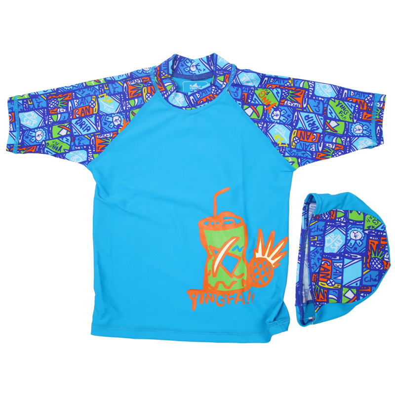 English Hair Children Boy Middle Child Short Middle Sleeve Two-piece Cartoon Swimsuit 50% Pants Swimsuit Delivery Matching Swimming Cap