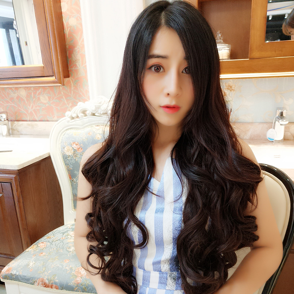 Wig girl long roll hair extension One piece realistic invisible hair piece Thickened curly hair piece Long hair simulation hair straight hair piece