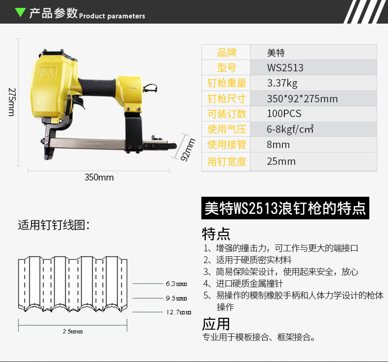 Metws2513 pneumatic wave gun Metwood ripple nail ripple pin wood joint impact needle