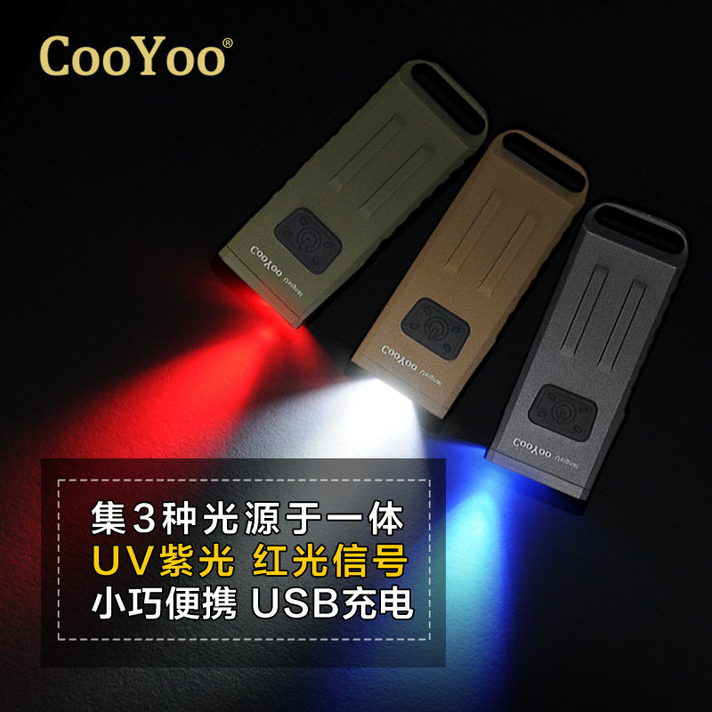 CooYoo mini U-shaped light strong light flashlight tactical signal light car key LED light USB charging waterproof