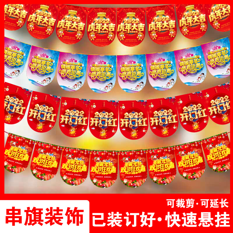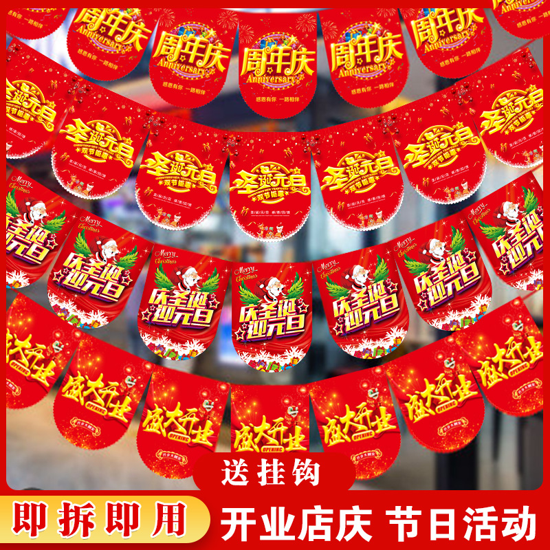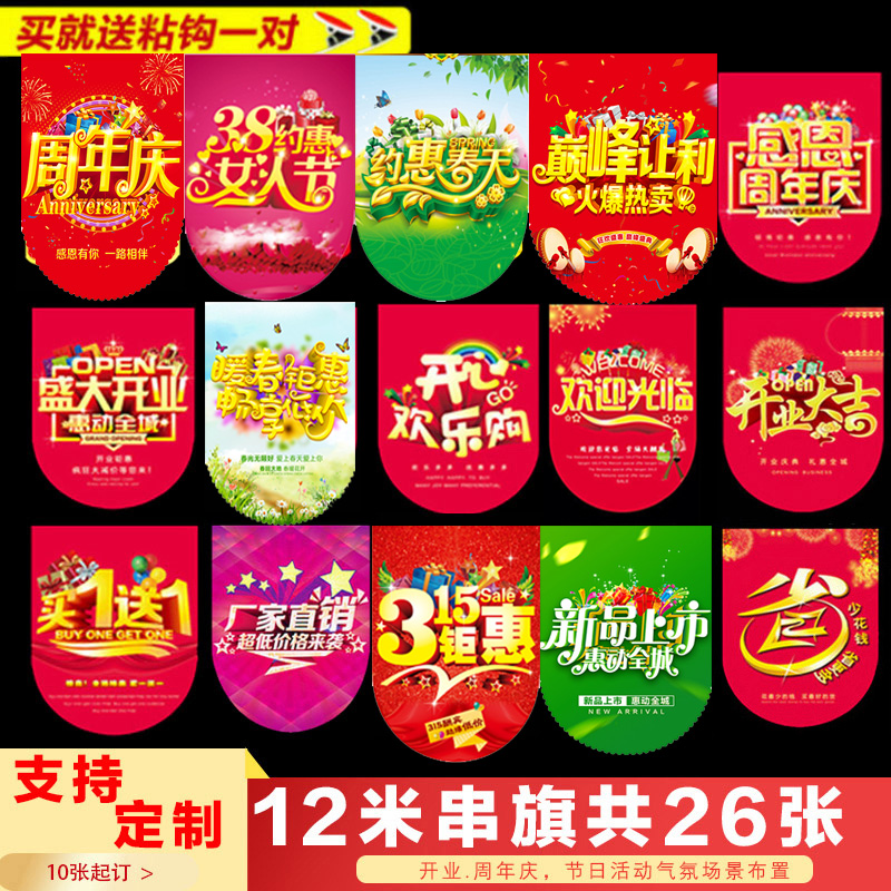 Warm Spring Summer 38 Festival Anniversary Shop Flag Custom String Flags Double Face Opening Promotion Pop shop Atmosphere Color Flags Advertising Custom Set Up Decoration Arrangement Activities Supermarket Posters Hung Flags