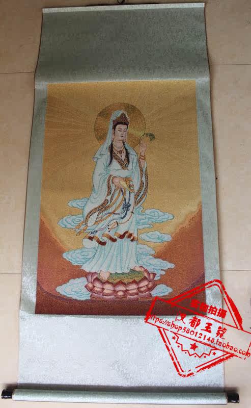 Tibet Tangka Hung Painting Brocade Embroidery Painting Tangka Embroidery Middle Hall Paintings of Guanyin portraits Buddhist statues