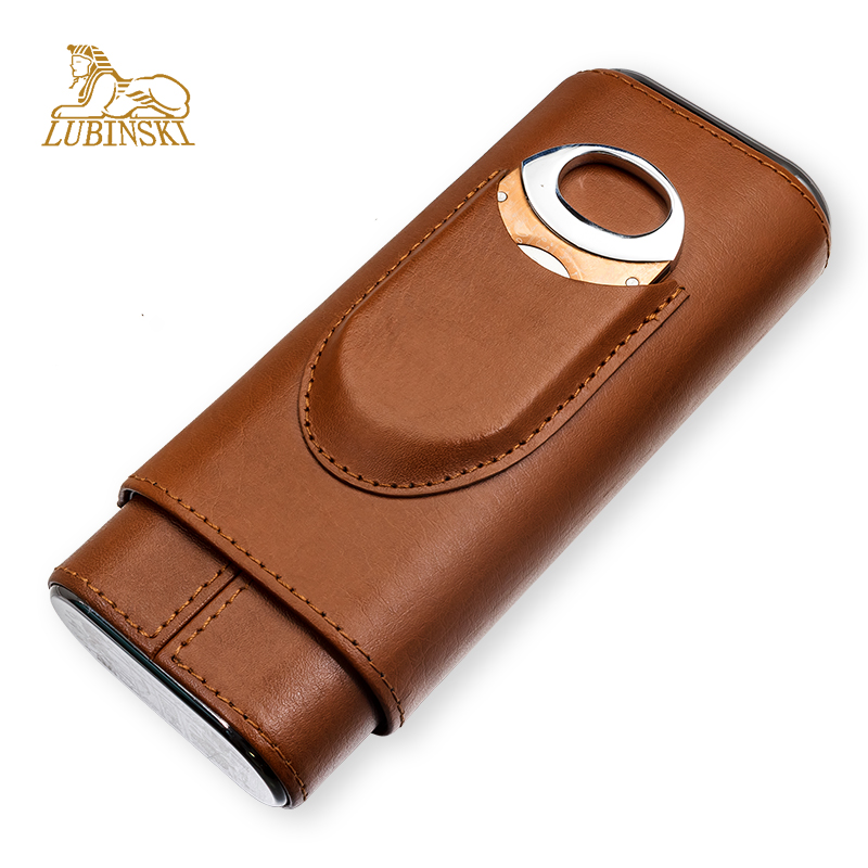 LUBINSKI Cigar kit portable cigar scissors suit genuine leather cedar wood inner wall Cigar moisturizing tube