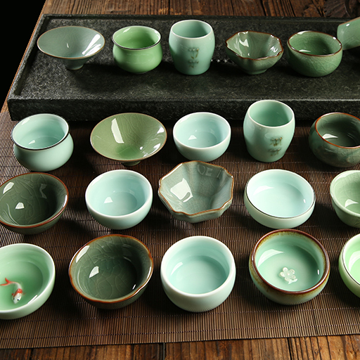 Qin Yun Geyao tea cup celadon master cup single cup ceramic tea cup kung fu tea set ice cracked small tea bowl drinking tea