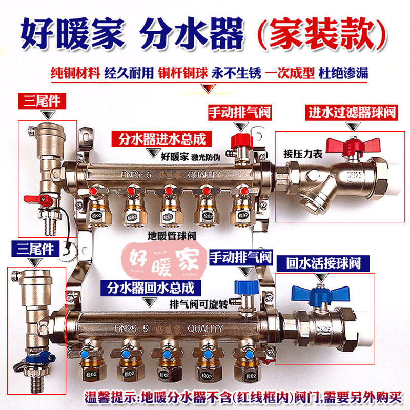 Floor heating water distributor valve water inlet backwater valve filter ball valve sleeve valve multifunction full copper geothermal special valve