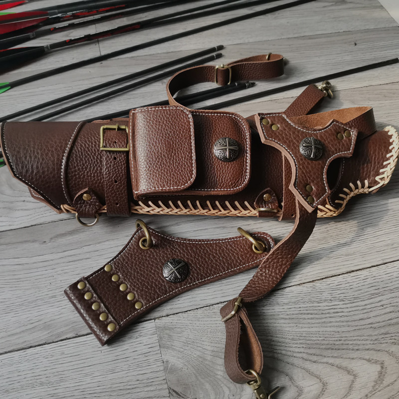 Archery quiver quiver leather pure handmade top layer cowhide beauty hunting quiver bottom magnet