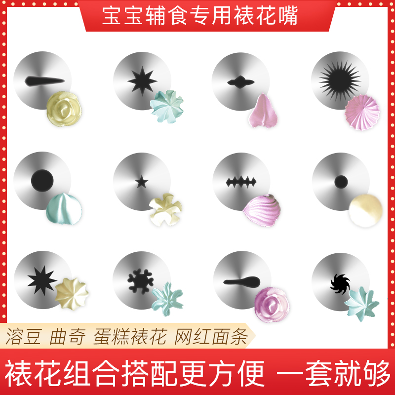 Mid-horn framed flower-framed flower-framed flower-framed mouth baby baby deputy food special (small number) stainless steel framed flower mouth 6 (send a conversion head) (middle number) stainless steel framed flower mouth 6 only (send for transfer)