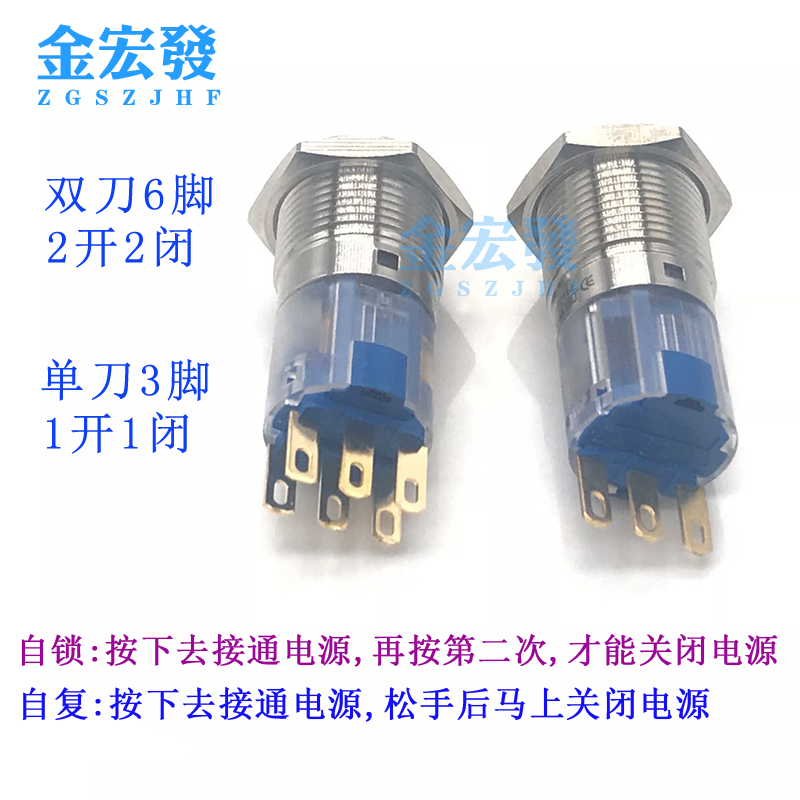 Metal button 16MM self-reset self-locking no light J16-211-E power start flat head button access