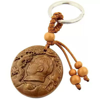 Feicheng peach wood Chairman Mao head car key pendant pendant key chain safe wood carving portable