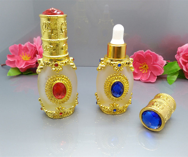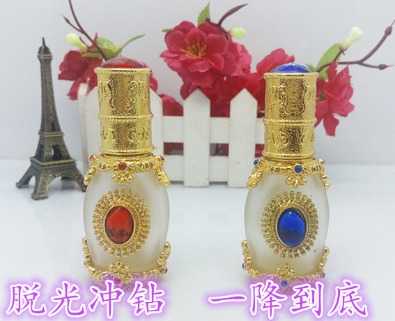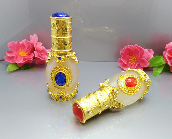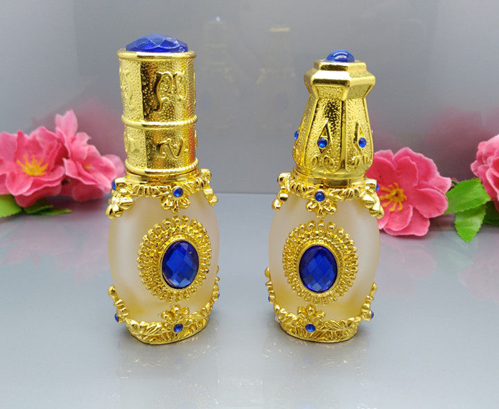 Arabish Blue Gem Essential Oil Bottle Gilded Inlaid Drill High-end Fragrant Water Bottle Grain Embroidered Color split bottle