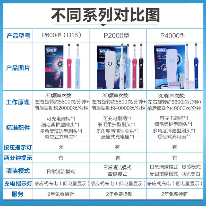oralb b electric toothbrush p2000 4000 3000 Sonic fully automatic 3d adult rechargeable D16