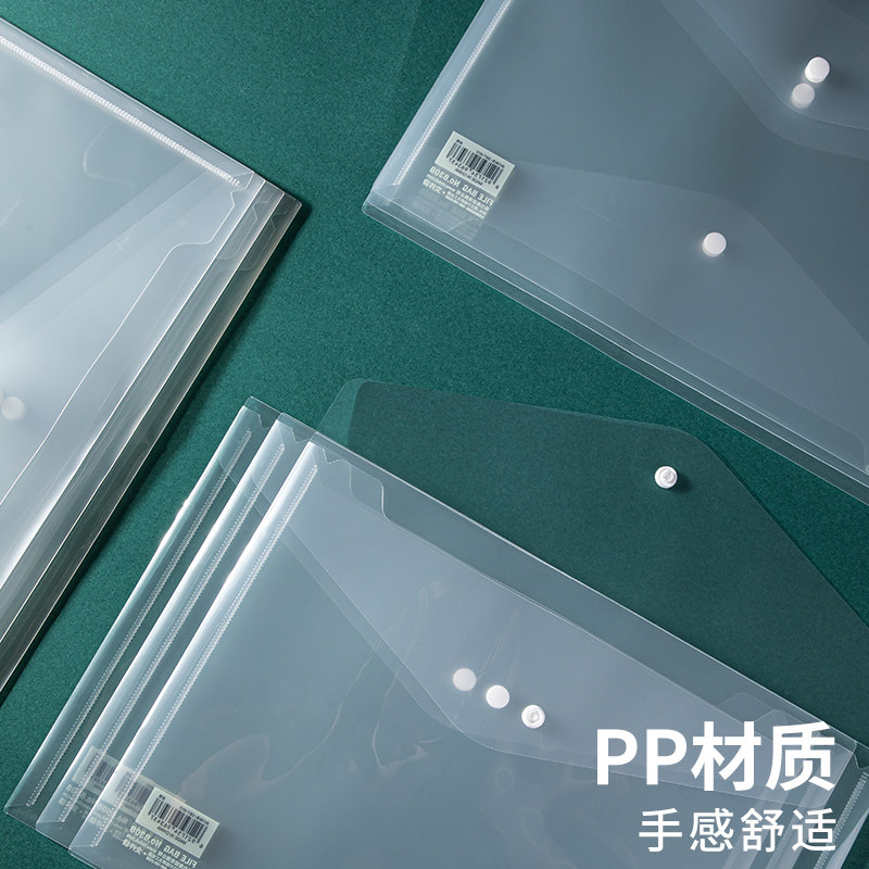 Deli 5505 transparent document bag Information bag a4 document bag thickened file bag Plastic student snap document bag paper bag Button bag Bill storage bag Folder paper bag