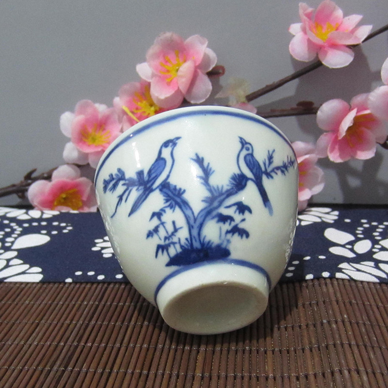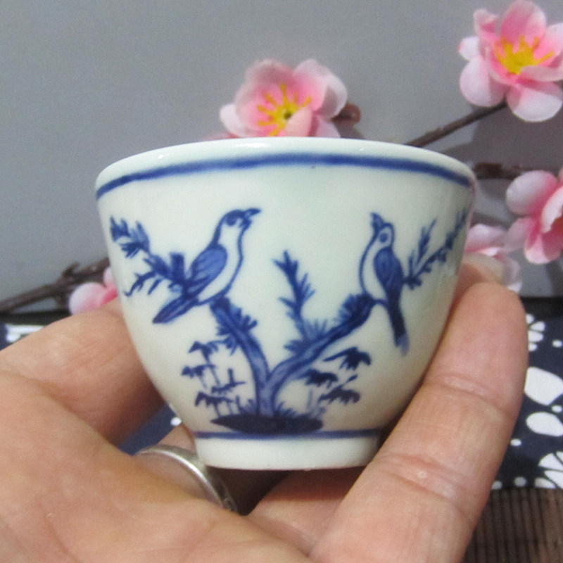 Jingdezhen Cultural Revolution Factory goods Porcelain Firewood Kiln Hand Painted Green Flowers Birds flowers fragrant Three-cylinder Cup Cup of Tea Tea Tea-Taobao