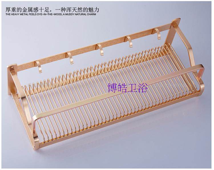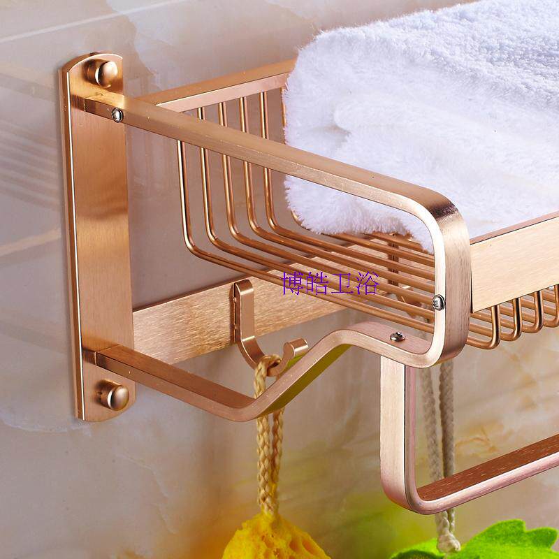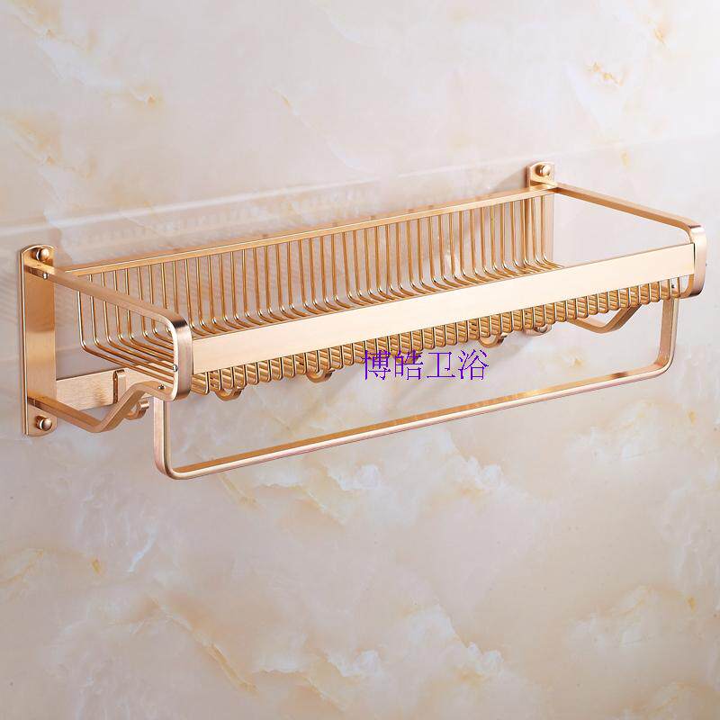 Powder room thickened space aluminum towel rack Hotel pendant Golden bath towel rack Bathroom wall shelf free hole