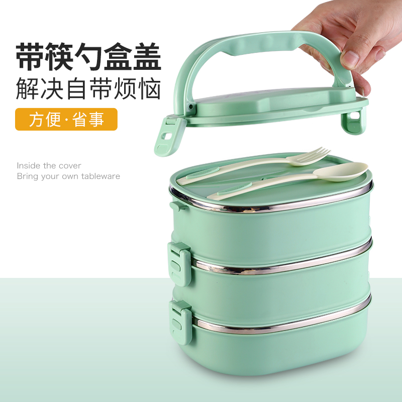 Multi-layer insulation lunch box stainless steel rectangular primary school lunch box large-capacity office worker double-layer three-layer lunch box