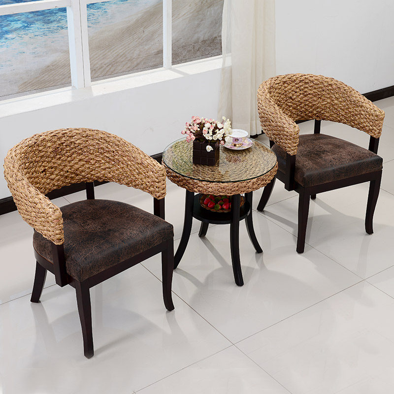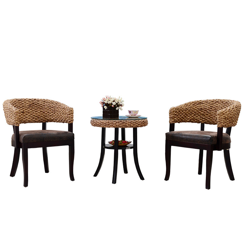 Balcony rattan choreography leisure chair tea table three sets of backrest chairs in negotiation table and chairs combined folk and hotel real rattan furniture