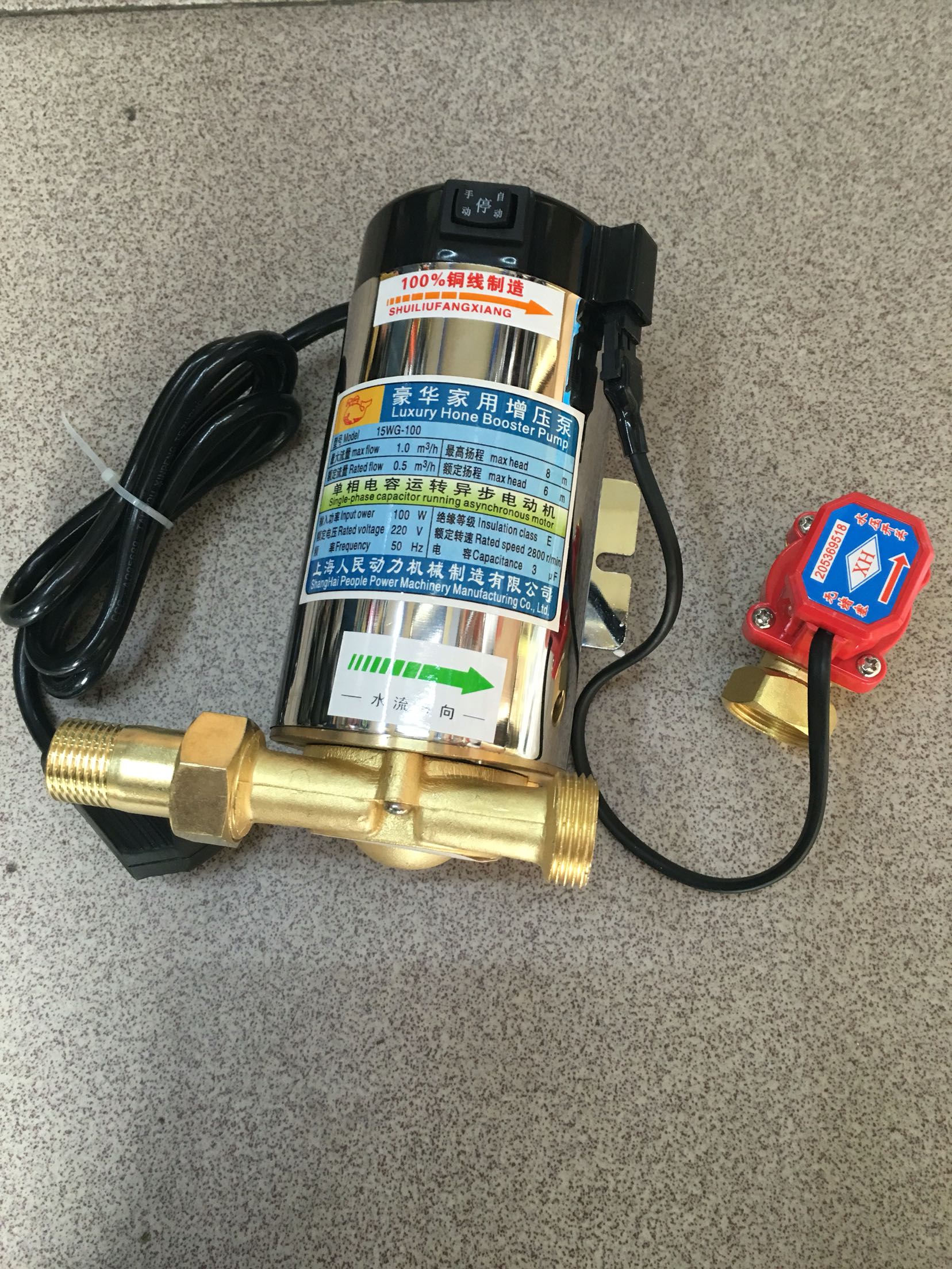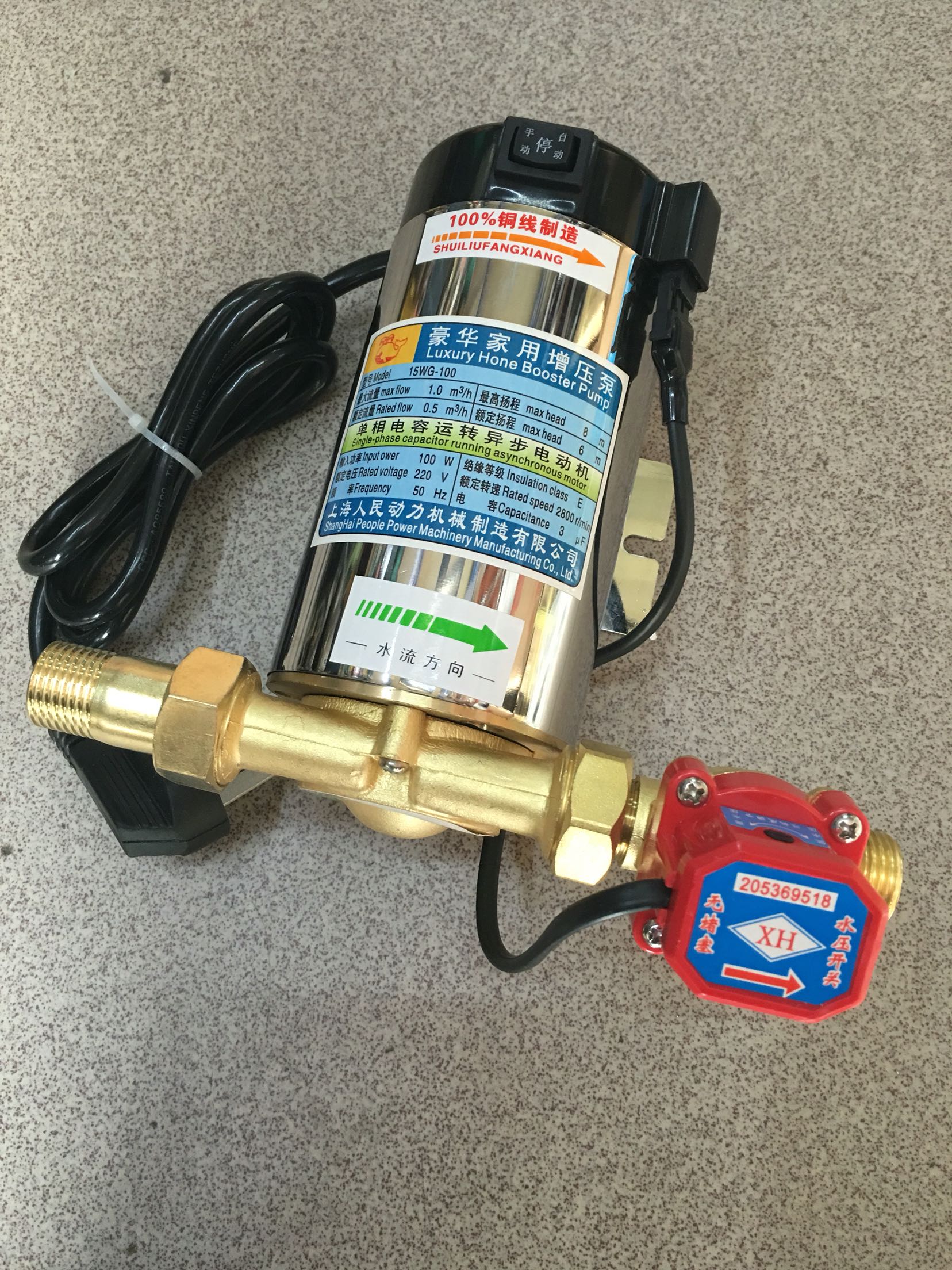 Shanghai People Household Fully Automatic Tap Water Booster Pump Water Heater Pressurized Pump Silent Stainless Steel Copper Motor