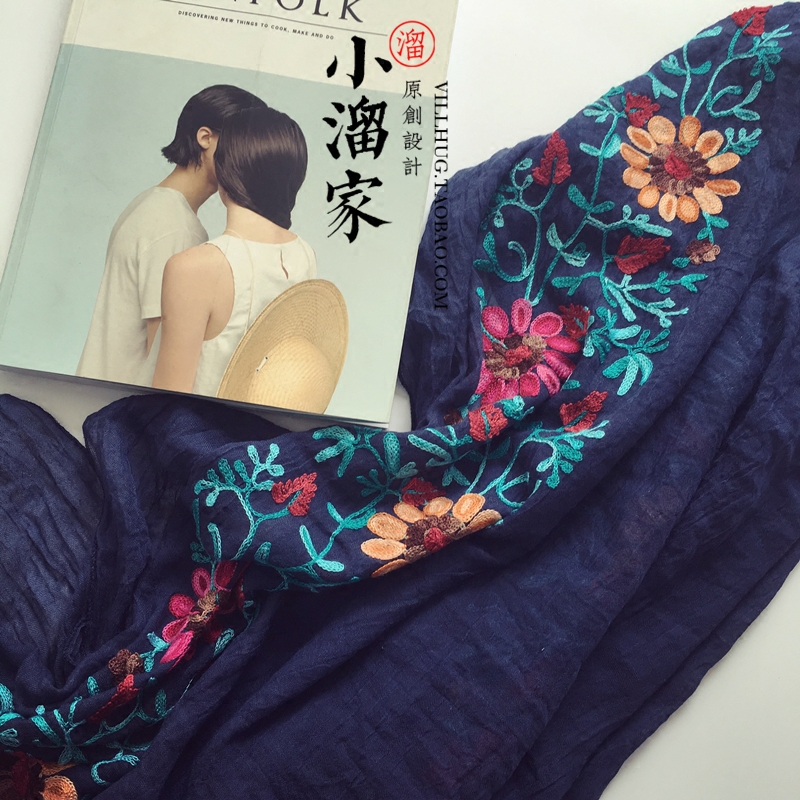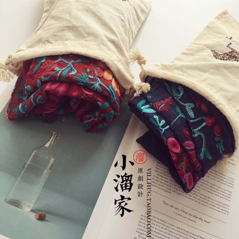 2023 Spring Fall Embroidered Linen Cotton Flowers Cotton Linen Scarves Air Conditioning Sunscreen Dual-use Silk Scarlet Women Ethnic Wind Cape