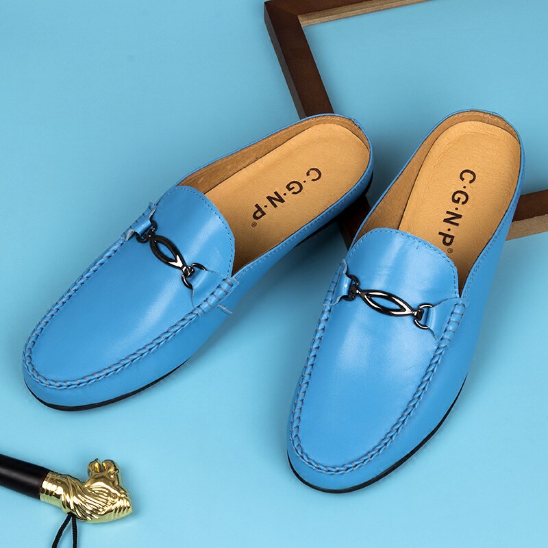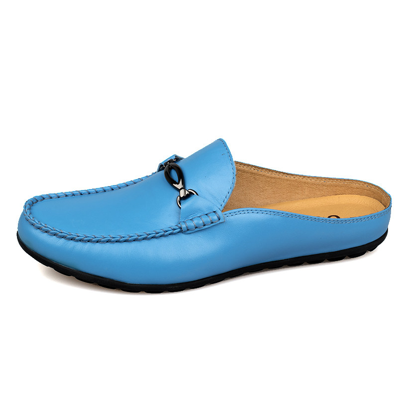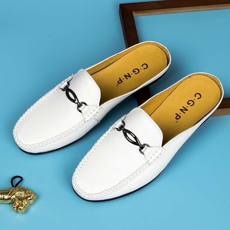 Summer breathable Baotou semi-trailer tofu skin shoes Korean version genuine leather heelless loafers men's casual fashion slippers