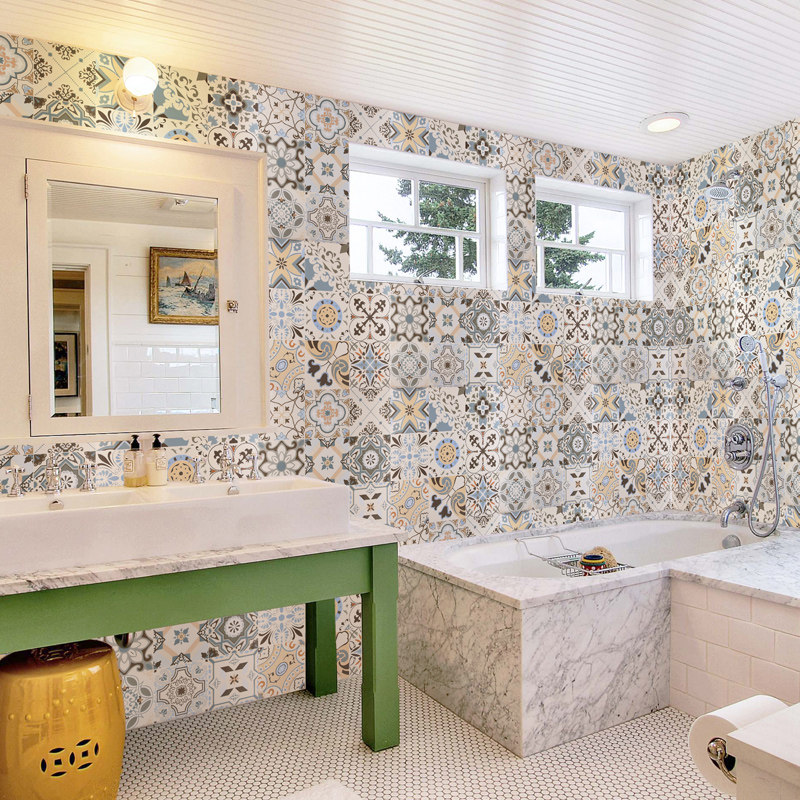 Mediterranean blue field garden small flower brick 200 x 200 retro antique antique magnetic brick flower sheet Staircase Garden Terrace floor tiles